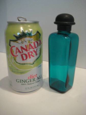 This is an Empty Collectible Hermes Teal Bottle, Made in France. 4 fl.oz. It is a Beautiful Color and Nice Size. Approximately: 5.5" Tall. No Texts. No emails. CALL from 9 AM to 9 PM.