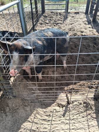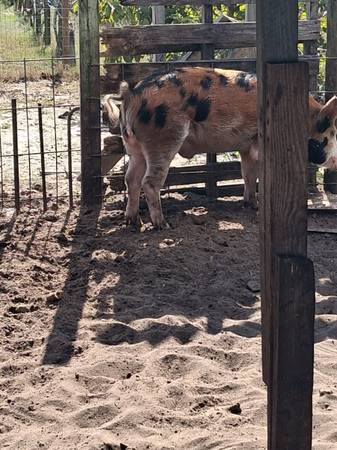 Cerdo de diferentes tamaños a la venta de 80 a 100 libras 250 $ y los mas pequeños mas baratos texto al